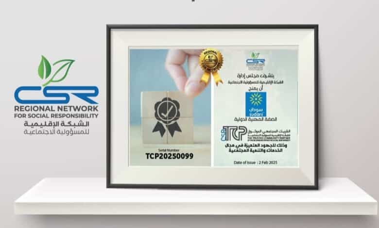 منحت الشبكة الإقليمية للمسؤولية الاجتماعية شركة سوداني للاتصالات جائزة الشريك المجتمعي الموثوق للشبكة الإقليمية للمسؤولية الاجتماعية للعام 2024، ضمن فعاليات الملتقى الثالث عشر للشبكة.
