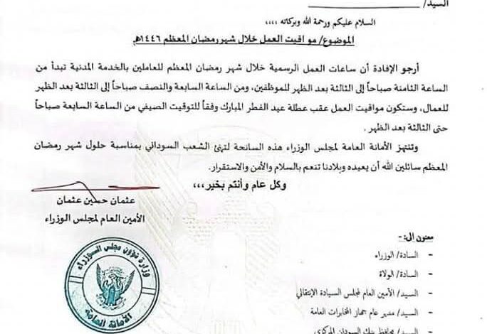 السودان.. تعديل مواعيد عمل الموظفين في رمضان