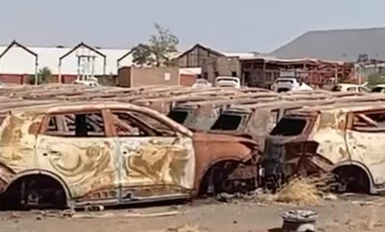 وثقت فيديوهات متداولة عن خراب كبير تسببت به مليشيا الدعم السريع بسيارات مدينة جياد الصناعية جنوب الخرطوم.