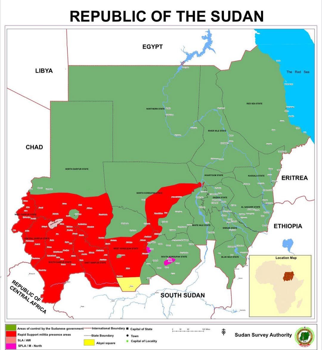 نشرت القوات المسلحة السودانية خريطة حديثة توضح مواقع سيطرة الحكومة السودانية.