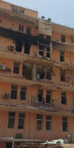 الصور التي تم تداولها عبر وسائل الإعلام ومواقع التواصل الاجتماعي تُظهر دمارًا واسعًا طال مباني المستشفى وأقسامه الحيوية، بما في ذلك غرف العلاج والطوارئ، فضلًا عن المعدات الطبية التي دُمرت بالكامل، وهو ما جعل المستشفى خارج نطاق الخدمة تمامًا.