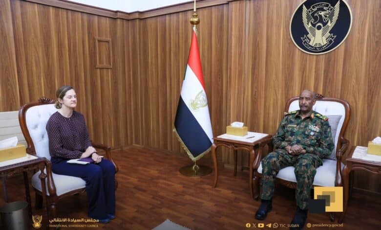 في لقاء سياسي مهم حمل رسائل دولية متعددة، استقبل رئيس مجلس السيادة الانتقالي القائد العام للقوات المسلحة، الفريق أول ركن عبد الفتاح البرهان، اليوم بمدينة بورتسودان، السيدة كيت فوستر، مديرة الشؤون الإفريقية بوزارة الخارجية البريطانية، بحضور وكيل وزارة الخارجية السودانية السفير حسين الأمين.