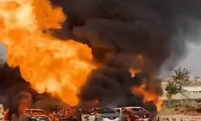 تفحم سيارات ومشهد كارثي