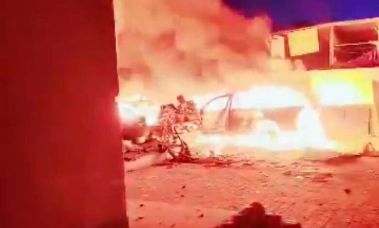 وبحسب شهود عيان، أسفر القصف عن تدمير صهريجين يحتويان على وقود الديزل، مع وقوع أضرار جانبية نتيجة اندلاع الحريق، تخلله دوي انفجار عنيف.