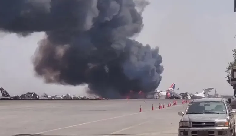 وثّقت مشاهد مصوّرة لحظة تدمير آخر طائرة مدنية في مطار العاصمة اليمنية صنعاء، عقب سلسلة من الغارات الجوية التي شنتها إسرائيل، استهدفت مواقع مرتبطة بجماعة الحوثي. وأظهرت اللقطات تصاعد ألسنة النيران والدخان الكثيف من مدرج المطار، وسط حالة من الذهول والغضب المحلي والدولي.