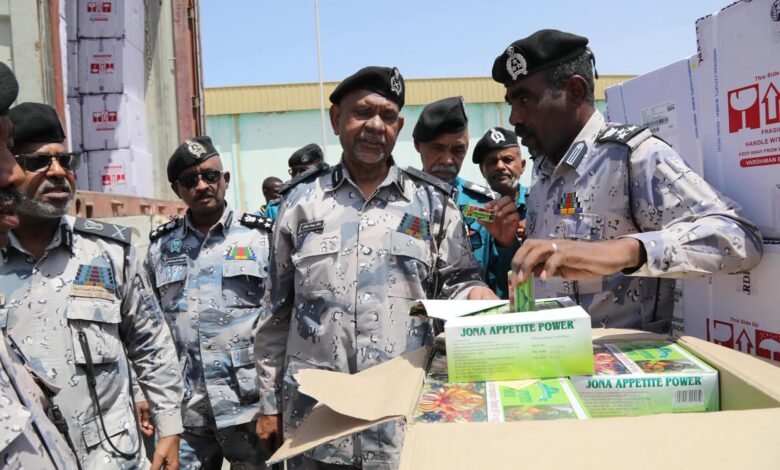 وفي سياق متصل، وقف اللواء بابكر والوفد المرافق له على الضبطية الكبيرة التي حققتها دائرة جمارك الميناء الجنوبي، وذلك بحضور العميد شرطة بخيت حسن بخيت، مدير دائرة جمارك الميناء الجنوبي، الذي أوضح أنه تم ضبط (٢،٨٨٠) جوال زنة (٢٥) كيلوجرام من مادة الكربون النشط معلنة في المستندات على أنها بضائع أخرى، إلى جانب عدد (٧٥٦) كرتونة من المكملات الغذائية (حبوب فواكه) غير مسجلة لدى وزارة الصحة كانت مشحونة مع شحنة أحواض صحية.
