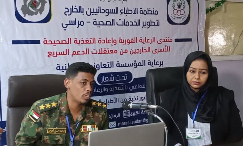 وحذروا خلال منتدى (الرعاية الفورية وإعادة التغذية الصحيحة للأسرى الخارجين من معتقلات مليشيا الدعم السريع)، الذي نظمته منظمة الأطباء السودانيين بالخارج لتطوير الخدمات الصحية (مراسي) يوم السبت، بقاعة مستشفى الأورام (الذرة)، تحت رعاية المؤسسة التعاونية، من التغذية المميتة للعائدين من الأسر، ومن إعطائهم سكريات ونشويات. وأكدوا ضرورة التركيز على النظام الغذائي المتوازن الذي يوفر الطاقة اللازمة للشفاء، والتعويض عن النقص في العناصر الغذائية. كما أعلنوا عن ترتيبات لوضع بروتوكول بالاتفاق مع وزارة الصحة لعلاج أسرى الحرب.
