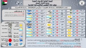 أطلقت الهيئة العامة لـ الأرصاد الجوية في السودان تحذيرًا مهمًا اليوم الأحد الموافق 15 يونيو 2025، دعت فيه المواطنين إلى توخي الحيطة والحذر في بعض المناطق المعرضة للأمطار الغزيرة، والنشاط المصاحب لها من رياح قوية وزوابع رعدية، مع احتمال جريان المياه في الأودية والمناطق المنخفضة.