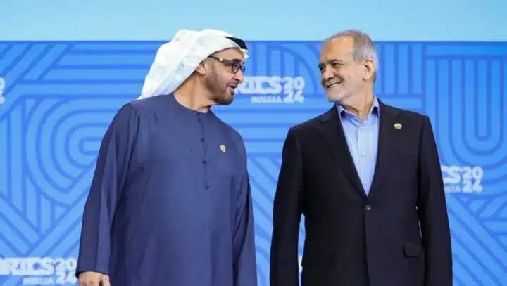 وقالت وكالة “وام” إن الرئيس الإيراني أعرب عن شكره لمحمد بن زايد على موقف الإمارات وتضامنها مع بلاده تجاه الاستهداف العسكري الإسرائيلي لأراضيها.