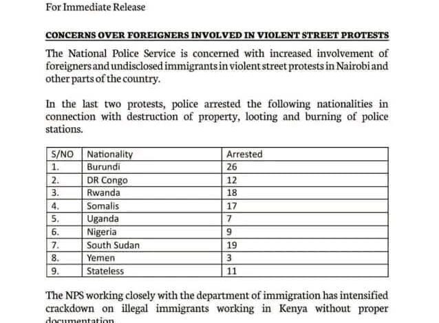 و أعقبت الاعتقالات التي نفذتها السلطات الكينية احتجاجات عنيفة في نيروبي ومدن أخرى، حيث اتهمت السلطات الأجانب بـ “استغلال الفوضى” لزعزعة استقرار الأمن.