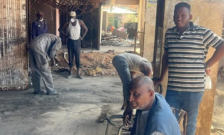 ونقلت السوداني عن شيخ الصاغة محمد تبيدي، إنهم أطلقوا امس السبت، ضربة البداية للعمل في نظافة وتأهيل المجمع لإزالة كافة آثار الحرب، مشيراً إلى أنّ المجمع تعرض لعمليات تخريب ونهب كبيرة.
