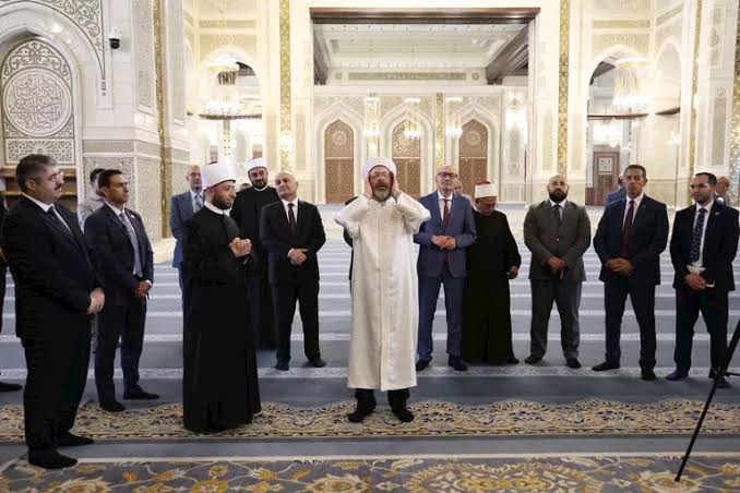 في حدث ديني وثقافي بارز رفع رئيس الشؤون الدينية التركية الدكتور علي أرباش، الأذان داخل مسجد مصر الكبير بالعاصمة الإدارية الجديدة في القاهرة، خلال زيارته الرسمية الأولى لمصر.