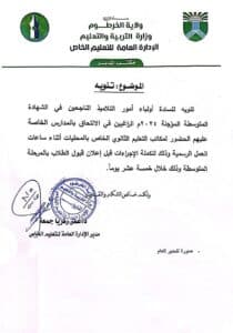 وفي تعميم رسمي، دعت الإدارة أولياء الأمور الذين يفضلون إلحاق أبنائهم بالمدارس الخاصة بدلًا من المدارس الحكومية، إلى ضرورة التوجه إلى مكاتب التعليم الثانوي الخاص في المحليات المختلفة، وذلك لتسجيل رغبتهم قبل تنفيذ عمليات التوزيع
