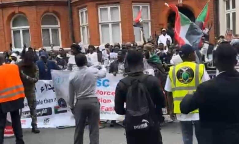 مئات السودانيين يتظاهرون أمام السفارة الكولومبية في لندن.. لماذا؟