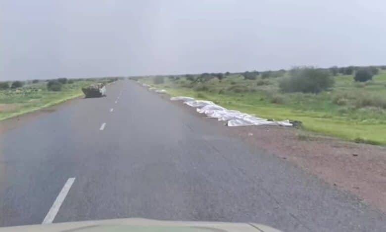 طريق الصادرات، الذي كان شرياناً للتجارة والتنقل، تحول إلى مسرح لمأساة غير مسبوقة. مصادر محلية تحدثت عن انتشار رائحة الموت بكثافة، ما جعل الهلال الأحمر يباشر عملية عاجلة لدفن الجثامين ومنع الكارثة من التفاقم.
