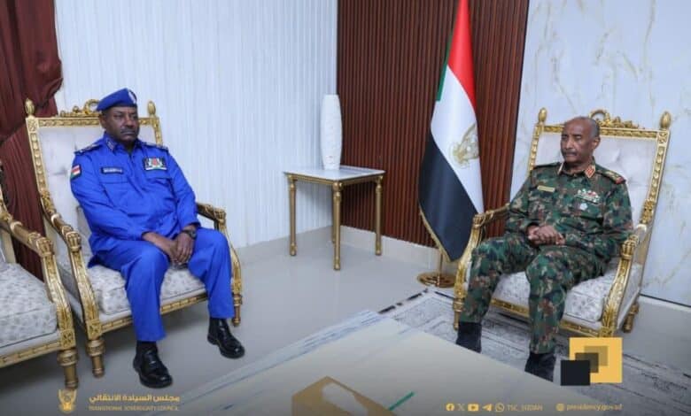 التقى رئيس مجلس السيادة الانتقالي والقائد العام للقوات المسلحة، الفريق أول الركن عبد الفتاح البرهان، اليوم بالفريق أول شرطة حقوقي أمير عبد المنعم فضل، مدير عام قوات الشرطة، لبحث مستجدات الأوضاع الأمنية في البلاد.