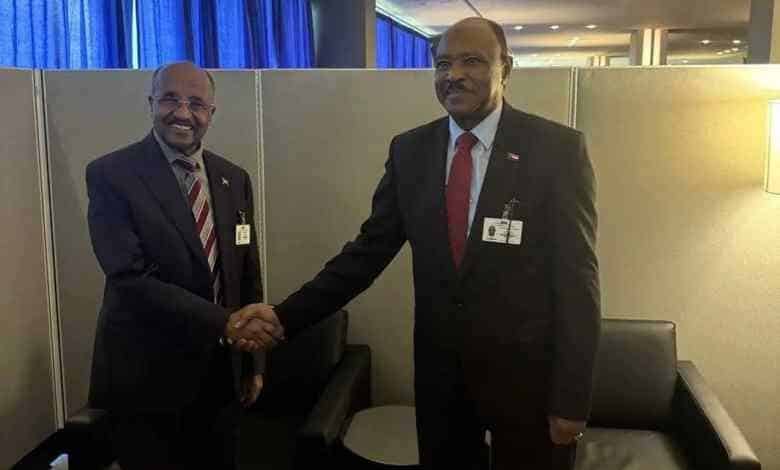 عُقد مساء الثلاثاء 23 سبتمبر 2025 لقاء ثنائي بين معالي السيد محي الدين سالم، وزير الخارجية والتعاون الدولي لجمهورية السودان، ونظيره معالي السيد عثمان صالح محمد، وزير خارجية دولة إريتريا، وذلك على هامش أعمال الأسبوع رفيع المستوى للدورة الثمانين للجمعية العامة للأمم المتحدة. استهل معالي السيد الوزير محي الدين سالم اللقاء بتقديم الشكر والعرفان لدولة إريتريا الشقيقة على مواقفها الأخوية الصادقة والداعمة للسودان خلال معركة الكرامة، معبرًا عن تقديره الكبير للدور الذي لعبته إريتريا في دعم السودان.
