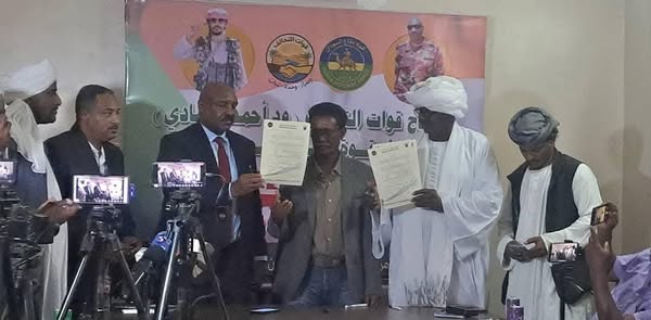 شهدت مدينة بورتسودان، صباح الإثنين 29 سبتمبر 2025م، توقيع اتفاق اندماج تاريخي بين قوات التحالف بقيادة ودأحمد علي العبادي، وقوة دفاع السودان بقيادة محمد سيدأحمد سرالختم الجكومي. الاتفاق تم توقيعه بحضور كل من سيف الدين أبونورة والمشرف على قوة دفاع السودان بولاية نهر النيل، محمد عبدالله ودعشرة، في خطوة تهدف إلى توحيد الجهود الأمنية تحت مظلة رسمية واحدة.