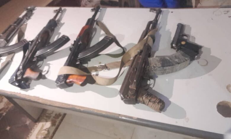 - – أربع بنادق كلاشنكوف مع طلقات متفاوتة بحوزة أربعة متهمين آخرين، جميعهم دون مستندات ملكية.