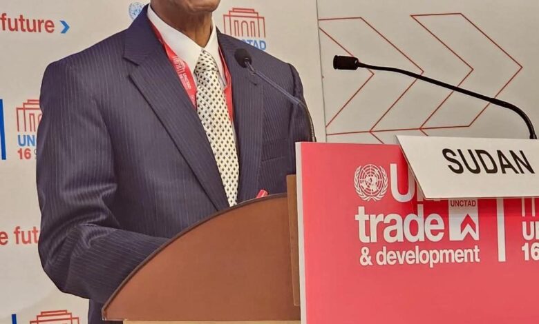 قدم مندوب السودان الدائم لدى جنيف، السفير حسن حامد، اليوم الخميس، بيان السودان أمام المؤتمر الوزاري السادس عشر لمنظمة الأمم المتحدة للتجارة والتنمية (الأونكتاد). واستعرض السفير في بيانه حجم الاستهداف والتخريب الممنهج الذي قامت به المليشيا المتمردة لبنية الدولة التحتية والاقتصادية.