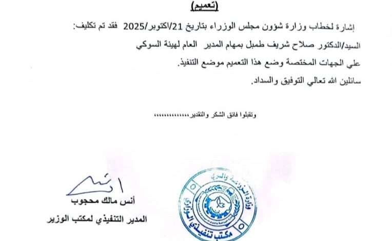 ويأتي هذا التعيين ضمن جهود الوزارة الرامية إلى تطوير القطاع الزراعي وتحقيق الأمن الغذائي، حيث تأمل أن يسهم القرار في رفع كفاءة المشروع وزيادة إنتاجيته، بما ينعكس إيجابًا على الاقتصاد الوطني.