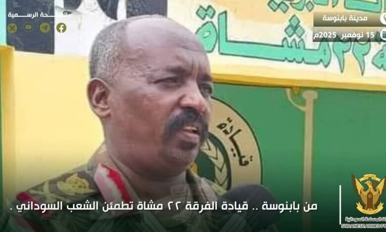 وأكد أن جنود الفرقة ٢٢ مشاة يقاتلون بعقيدة راسخة وإيمان كبير، وأن الموت هو المصير المحتوم لكل من يقترب من حدود بابنوسة أو يحاول تهديد أمنها.