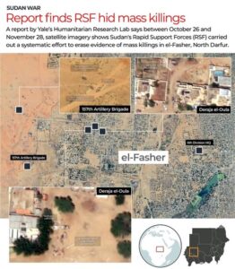 كشف تقرير حديث صادر عن مختبر الأبحاث الإنسانية بجامعة ييل الأمريكية أن مليشيا الدعم السريع قامت بعمليات تدمير وإخفاء ممنهجة للأدلة المرتبطة بمجازر وقتل جماعي ارتكبتها عقب دخولها مدينة الفاشر بولاية شمال دارفور، وأوضح المختبر، الذي يستند في رصده إلى صور الأقمار الاصطناعية وتقنيات الاستشعار عن بُعد، أن المليشيا سعت جاهدة لطمس معالم جرائم بشعة ارتُكبت بحق المدنيين العزل، في محاولة للإفلات من العقاب الدولي بعد موجة الإدانات التي لاحقت عمليات الإعدام الميداني والاغتصاب الممنهج.