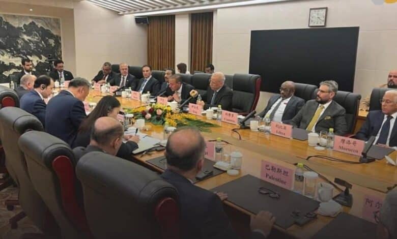 وأجرى الوفد العربي سلسلة من اللقاءات التنسيقية مع الجانب الصيني، بدأت بلقاء نائب وزير الخارجية الصيني مياو ديوي بمقر الوزارة، أعقبته جلسة مشاورات موسعة مع كبار المسؤولين الصينيين برئاسة السفير تشن ويتشينغ، مدير إدارة غربي آسيا وشمال أفريقيا بوزارة الخارجية الصينية، وذلك في إطار التحضير للقمة العربية الصينية الثانية.