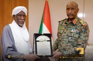 تسلم رئيس مجلس السيادة الانتقالي والقائد العام للقوات المسلحة، الفريق أول ركن عبد الفتاح البرهان، اليوم بمكتبه، وثيقة عهد وميثاق من كيان الأنصار، والتي تؤكد وقوف الكيان سنداً قوياً للجيش في “معركة الكرامة” لحماية سيادة البلاد ووحدتها.