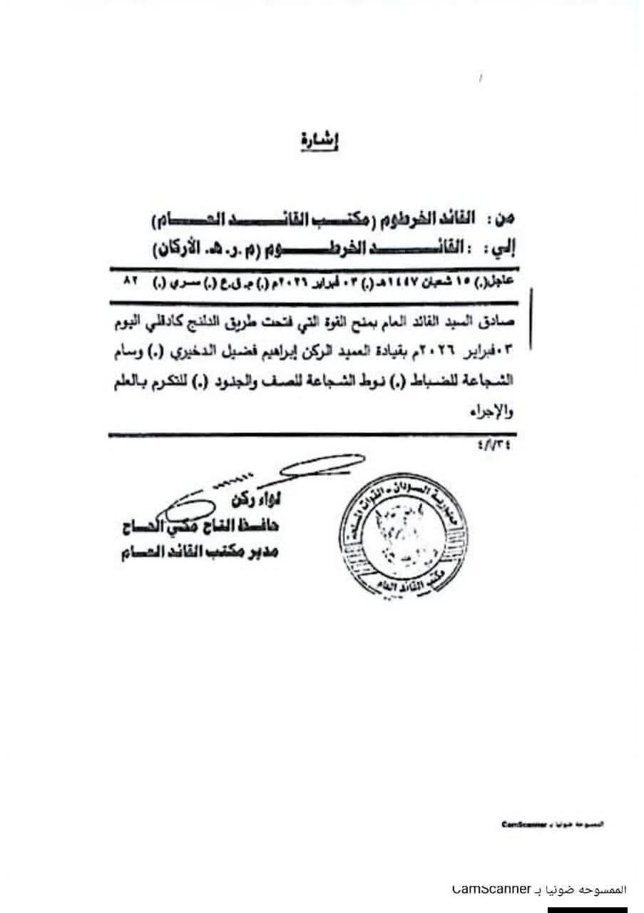 صادق رئيس مجلس السيادة والقائد العام للقوات المسلحة، الفريق أول ركن عبد الفتاح البرهان، على منح وسام الشجاعة لضباط القوات المسلحة الذين قادوا عمليات تطهير وتأمين طريق “الدلنج-كادقلي” الاستراتيجي.