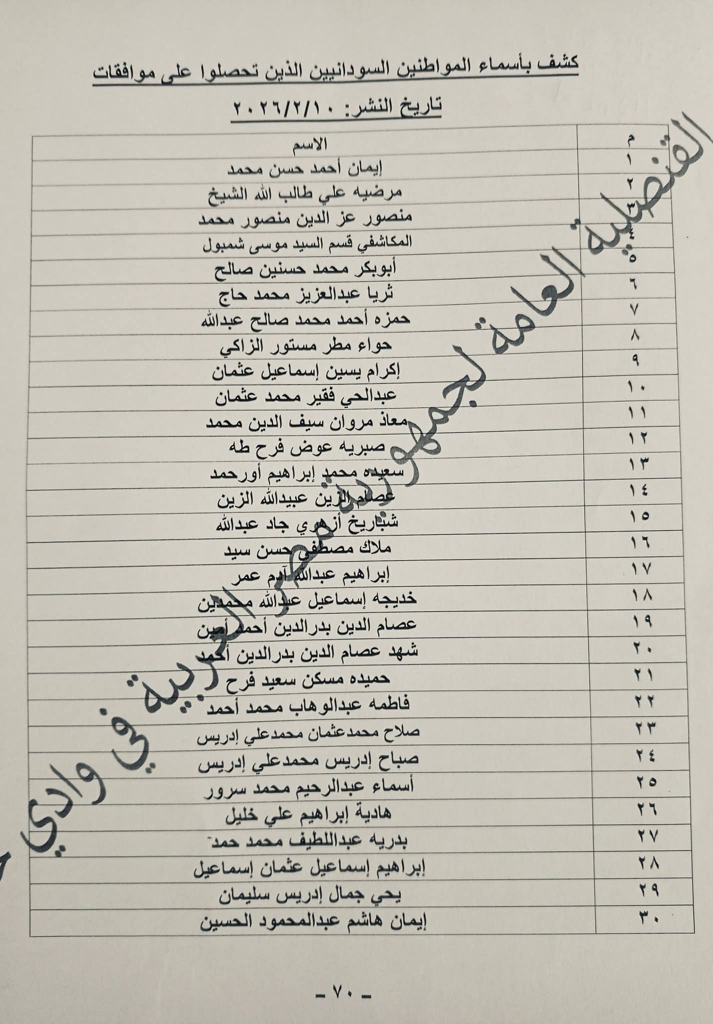 اعلنت القنصلية العامة لجمهورية مصر العربية في وادي حلفا عن صدور الموافقات الخاصة بمنح التأشيرات لعدد من المواطنين السودانيين.