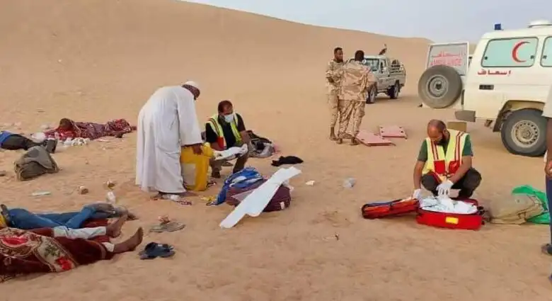 وأوضح الجهاز أن إحدى المركبات التي كانت تقل مهاجرين غير شرعيين تعرضت لحادث انقلاب في عمق الصحراء، حيث عُثر على 40 شخصًا بينهم رجال ونساء وأطفال في حالة إنسانية بالغة الصعوبة، بعد أن قضوا أكثر من ثلاثة أيام دون ماء أو طعام.