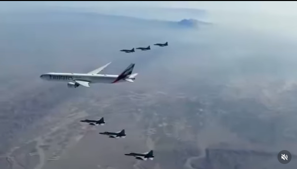 أفادت تقارير إعلامية وميدانية اليوم الخميس 9 أبريل 2026م، برصد طائرات مقاتلة تابعة للقوات الجوية الباكستانية وهي تقوم بمرافقة وتأمين الوفد الإيراني الرفيع الذي يزور باكستان حالياً. وتأتي هذه الخطوة البروتوكولية والأمنية العالية في إطار مراسم الاستقبال الرسمية، وتعبيراً عن مستوى التنسيق الأمني الرفيع بين طهران وإسلام آباد في ظل الظروف الإقليمية الراهنة التي تشهد توترات متصاعدة.