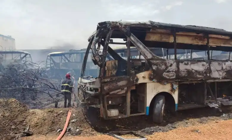 حريق هائل يلتهم 10 بصات سفرية بالسودان