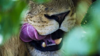 أسد يقفز فوق جدار ويهاجم امرأة وطفلين.. فيديو مرعب