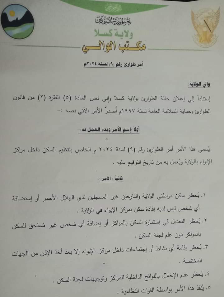 كسلا تصدر قرارات بخصوص السكن داخل مراكز الإيواء