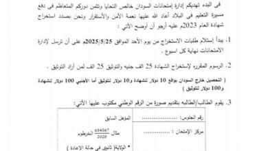 تحديد آخر موعد لـ التسجيل لامتحانات الشهادة السودانية