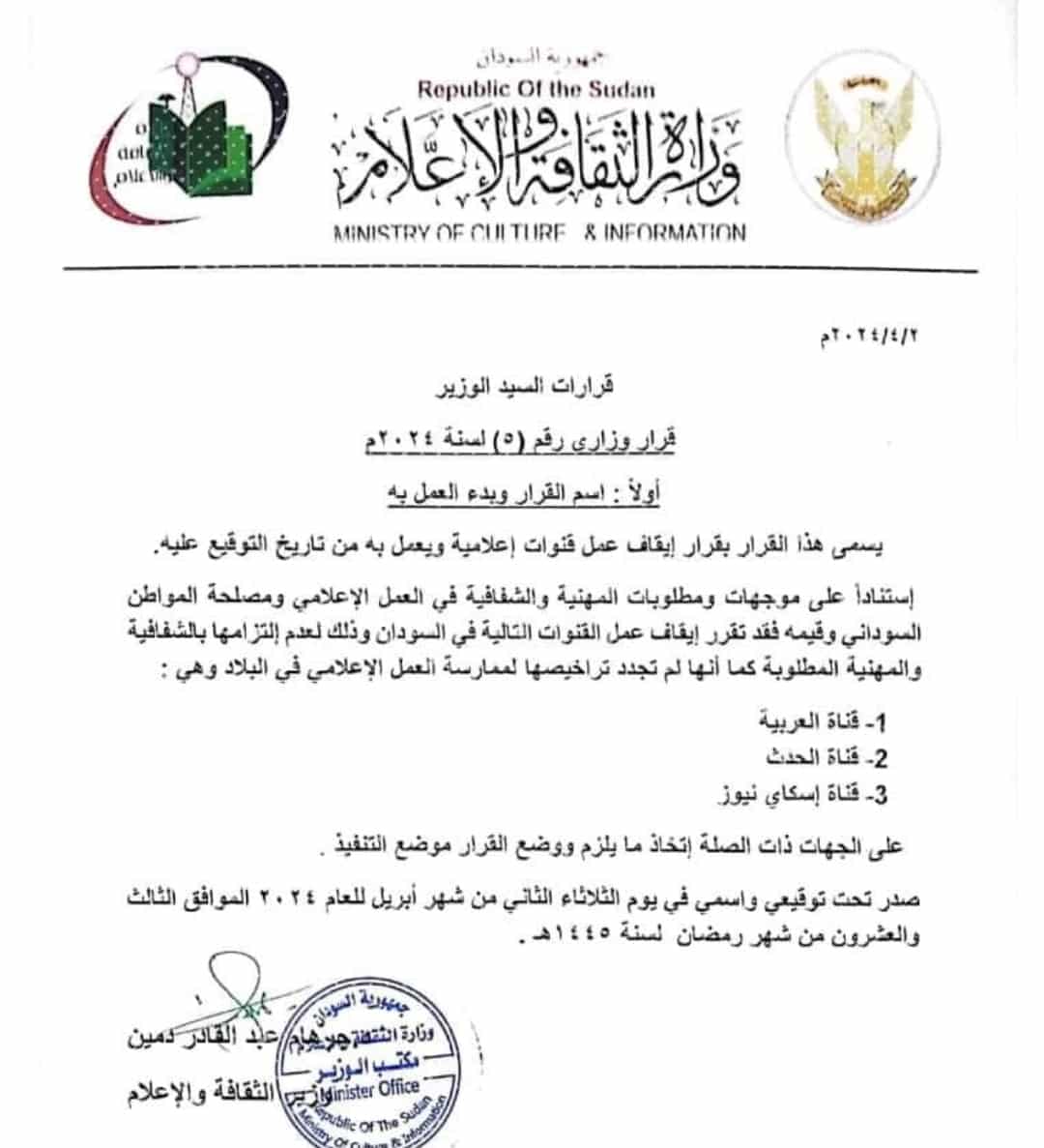 إعادة عمل قناتي «العربية والحدث» في السودان