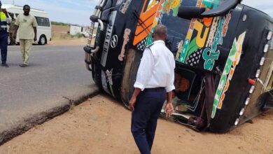 انقلاب باص سفري بطريق مدني الخرطوم