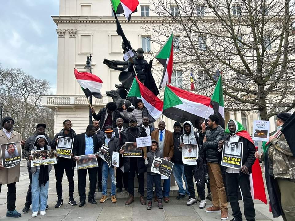مظاهرات سودانية ببريطانيا ضد جرائم الميليشيا وداعميها