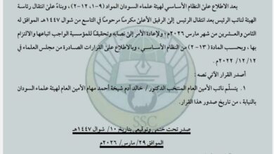 هيئة علماء السودان تعيد ترتيب هياكلها.. إنهاء تكليف الأمين العام المكلّف وإيقاف الصرف المالي